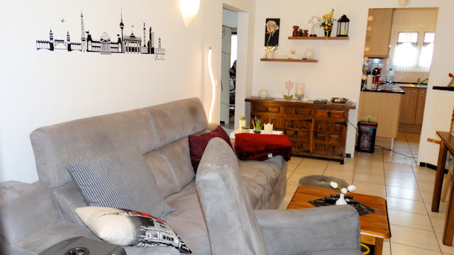 It is divided in: a big living-dining room, from where you go out to the terrace, a kitchen, 2 bedrooms, bathroom and a big garage.