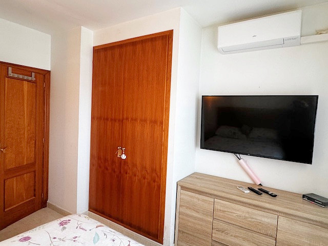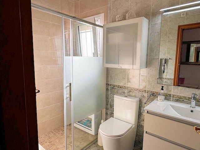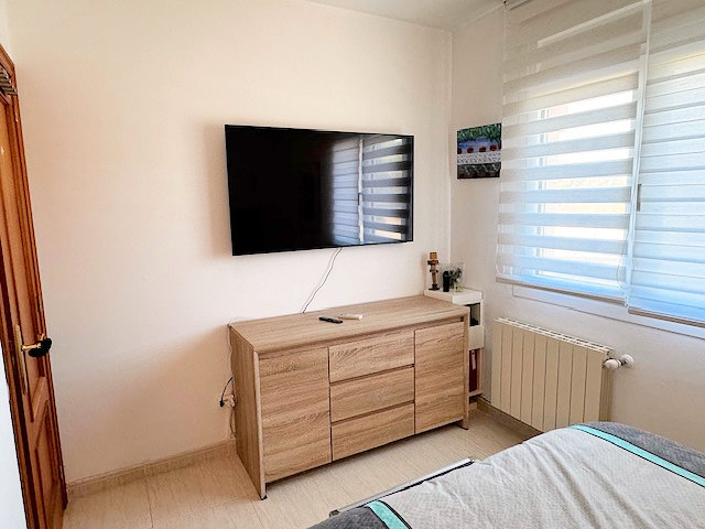 Tres dormitorios, un elegante baño con ducha al estilo italiano y acceso desde el pasillo a una terraza con vistas.