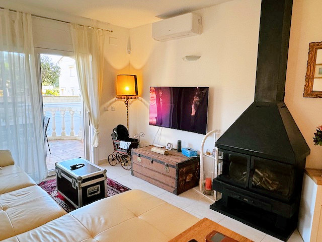Salón espacioso con chimenea y acceso a una terraza cubierta, comedor (que también puede usarse como cuarta habitación), cocina moderna totalmente equipada, baño con ducha y trastero.