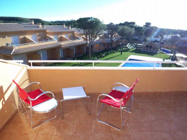 Maison mitoyenne à étage de 85 m2 dans une magnifique résidence, jardin avec barbecue et piscine communautaires pour 12 maisons, au calme, à 1200 m de la plage de Riells et des commerces. Étage : deux chambres, salle de bain, terrasse vue montagne, Rdc : salon/séjour avec cheminée, cuisine américaine, chambre, salle de douche, terrasse vue piscine et jardinet privé. Construction récente. En bon état. Chauffage / air conditionnée. Place parking sous terrain et débarras.