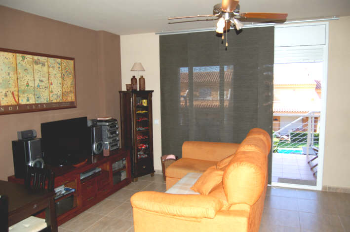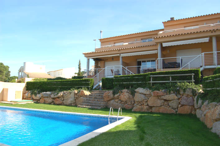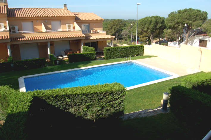 Maison mitoyenne à étage de 94 m2 dans une magnifique résidence, jardin avec barbecue et piscine communautaires pour 8 maisons, au calme, à 1200 m de la plage de Riells et des commerces. Étage : deux chambres, salle de bain, terrasse, Rdc : salon/séjour, cuisine américaine, chambre, salle de douche, terrasse vue piscine et jardinet privé. Construction récente. Chauffage / air conditionnée. Place parking et débarras. Excellent état.