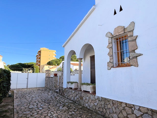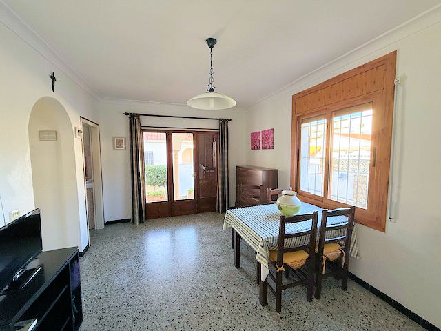 Die Doppelhaushälfte hat total 98m² liegt auf einem 218m2 Grundstück nur 800m vom Strand von Riells.