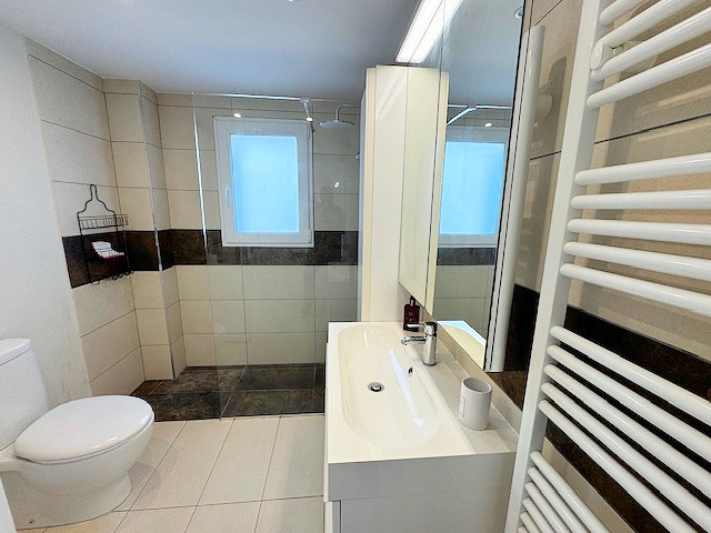 Il comprend un vaste séjour avec cuisine ouverte entièrement équipée, deux chambres avec placards intégrés et climatisation réversible, ainsi que deux salles de bains modernes avec douche.